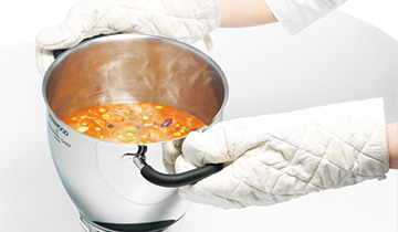 Основная особенность кухонной машины Kenwood Cooking Chef – одновременное приготовление и помешивание. Индукционная панель, которой оснащена данная серия, нагревается от 20° до 180 °С. Вы можете не переживать, что температура в чаше будет не та, что нужна, потому что ее измерит и будет удерживать встроенный датчик.