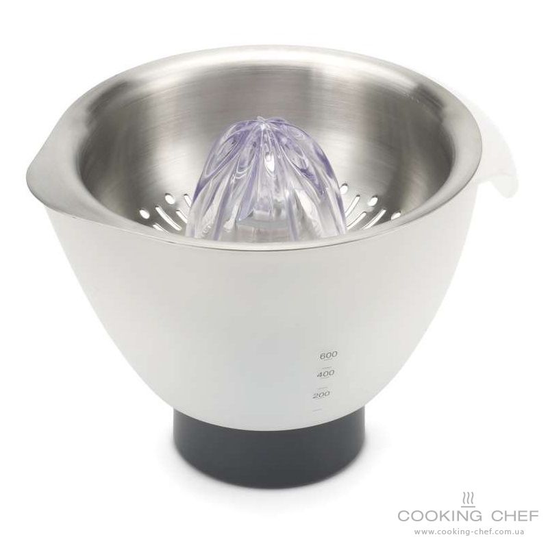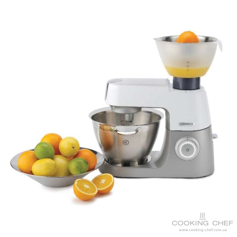Свежевыжатый апельсиновый сок пробуждает жизненный тонус и прекрасно снимает усталость, к тому же – это просто очень вкусно. Насадка цитрус-пресс Kenwood AT312 поможет Вам получать сок из цитрусовых каждый день. Вы можете купить ее для своей кухонной машины серий Chef Sense, kMix, Chef (KVC) и Chef XL (KVL), Cooking Chef (KCC). Приобретение насадки позволяет не покупать отдельный прибор цитрус-пресс, который будет занимать лишнее место. Насадка цитрус-пресс имеет простую конструкцию. Это пластиковая чаша и металлическая решетка. Объем чаши 600 мл, с такой вместительностью вы сможете приготовить несколько порций свежевыжатого скока за один раз. Сито изготовлено из нержавеющей стали. Принцип работы насадки очень прост. Фрукты необходимо предварительно подготовить – разрезать их на половинки, затем открытой частью поместить на рабочую часть насадки. Ребристый конус за счет своего вращения будет выжимать жидкость из фрукта. В сите останутся косточки, и в чашу попадет уже чистый сок. Чаша оборудована носиком и ручкой для удобства в обращении с ней. Благодаря Насадка цитрус-пресс весит чуть больше килограмма. Вы сможете поместить этот аксессуар в шкаф и доставать в случае необходимости. Компактность, практичность и невысокая цена насадки подчеркивает ее преимущество перед отдельным устройством для отжима сока.