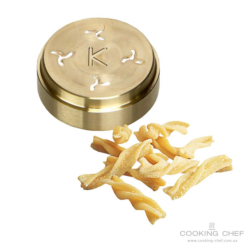 Насадка для приготовления макаронных изделий - Fusili. Имеет бронзовое покрытие и используется в комплекте с насадкой АТ 910 или KAX 910 ME. Подходит для кухонных машин серий Chef Sense, kMix, Chef (KVC) и Chef XL (KVL), Cooking Chef (KCC).