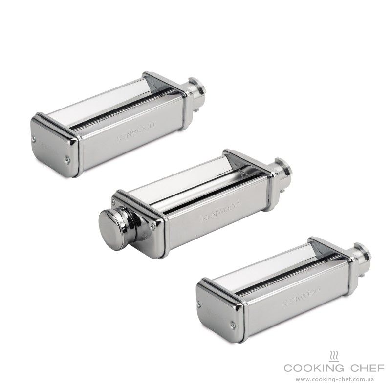 Набор из трех насадок: для раскатки теста KAX 980 ME, насадка KAX 981 ME для пасты Fettuccine (ширина нарезки: 6,5 мм) и насадка KAX 984 ME для пасты Spaghetti (ширина нарезки: 2 мм). Материал: металл. Подключение: низкоскоростной привод. Для кухонных машин серий Chef Sense, kMix, Chef (KVC) и Chef XL (KVL), Cooking Chef (KCC).